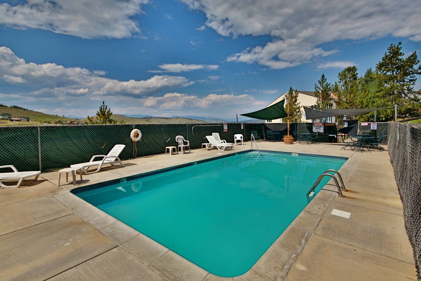 Most areas of the resort are unpaved gravel roads, with limited areas having sidewalks. The resort has a nice pool, but access to the pool area is by gravel road so make sure you are prepared, especially if you are a wheelchair user. The entrance to the pool (and all the rest of the signs on the resort) is not marked with braille, so let your nose be your guide and of course the sound of playing children. There were a couple tables with sun shades to sit under, and this can be a great place to relax after a long day exploring the Rocky Mountain National Park. Do be aware that there is no accessible pool entry, just stairs and a ladder on the side of the pool